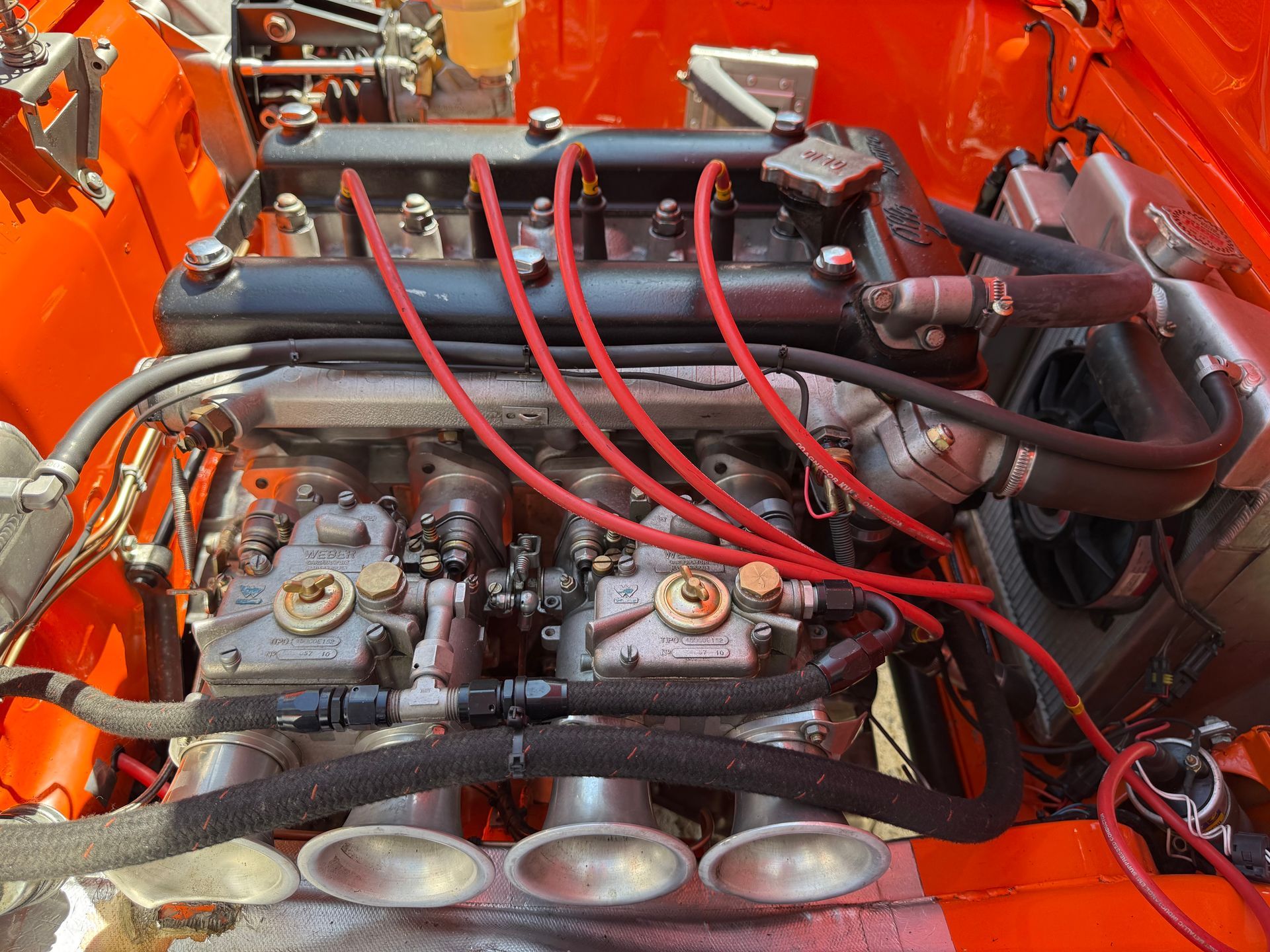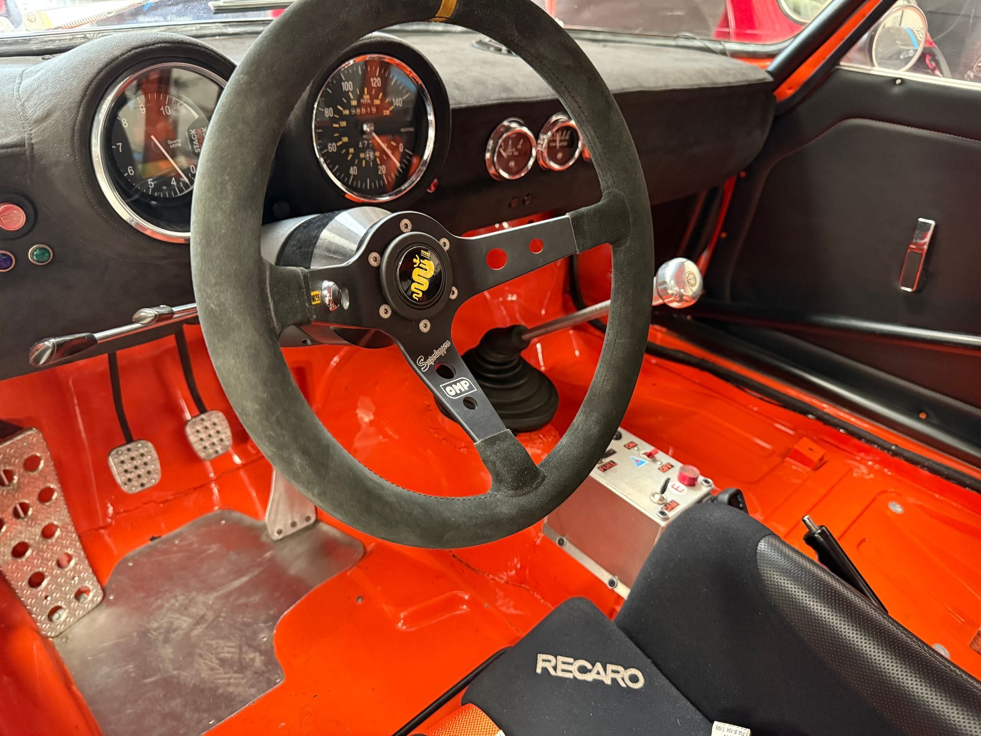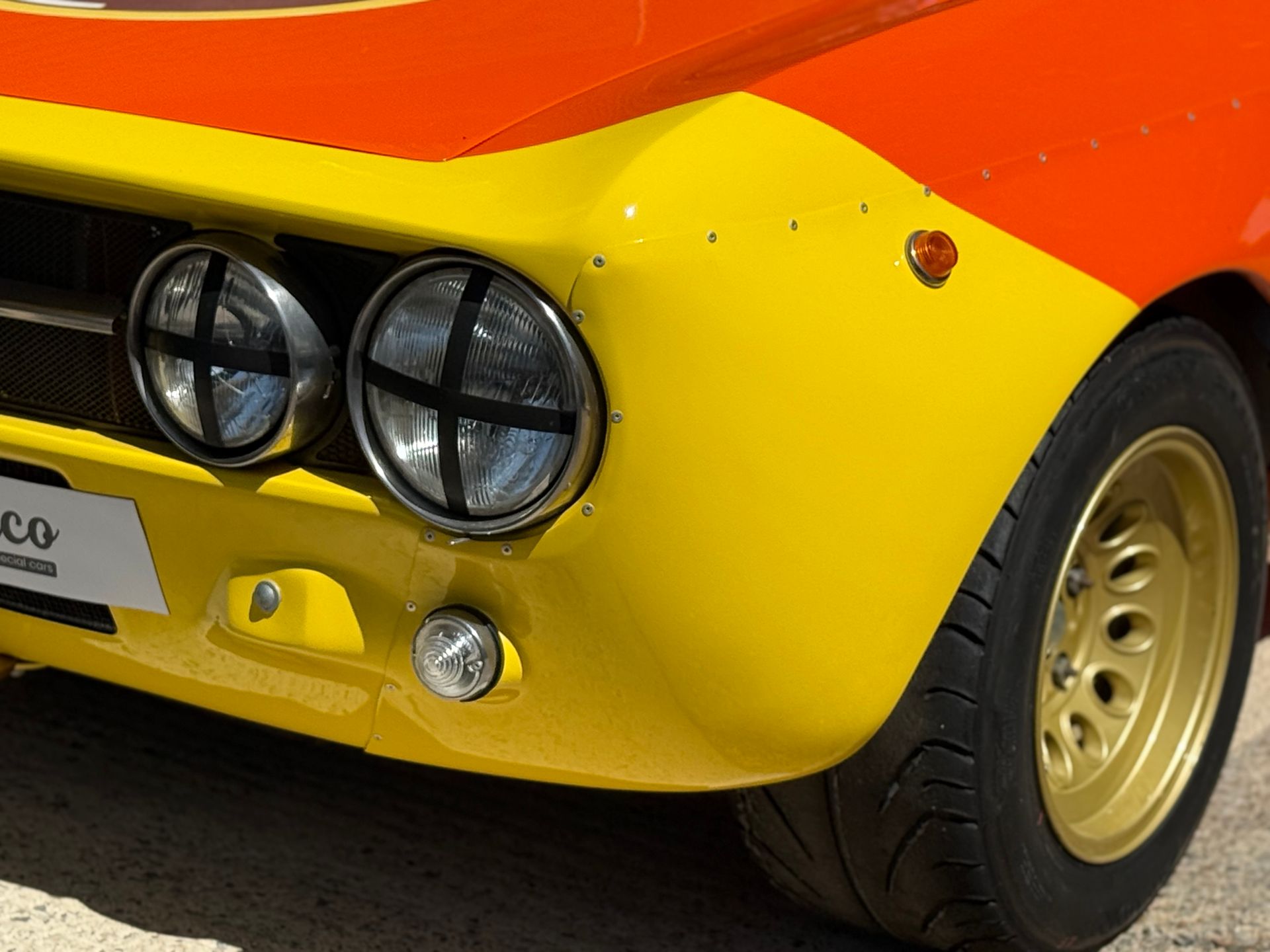 There is a 2.0 litre single spark engine running original Weber 45DCOE carbs, fitted with race spec pistons, rods & valves. It is also fitted with Magnecor spark plug & coil leads. The diff is a very rare and expensive Conrero differential and is fitted with a Zanghellini 5-speed dog box, which was purchased new with special “Nanni Ratios” at a cost of approximately £7000. The prop shaft has been built by GKN, and the prop doughnut has been replaced with a special machined one, as these are a common Alfa . There is a new radiator exactly made to original GTAm spec with bespoke header tank, catch tank and oil cooler. The side windows and rear have been replaced with aluminium-framed sliding Lexan race windows, and there is a 100-litre FIA spec fuel cell.