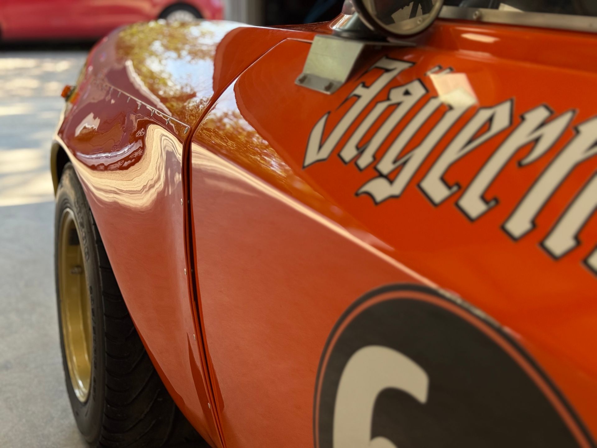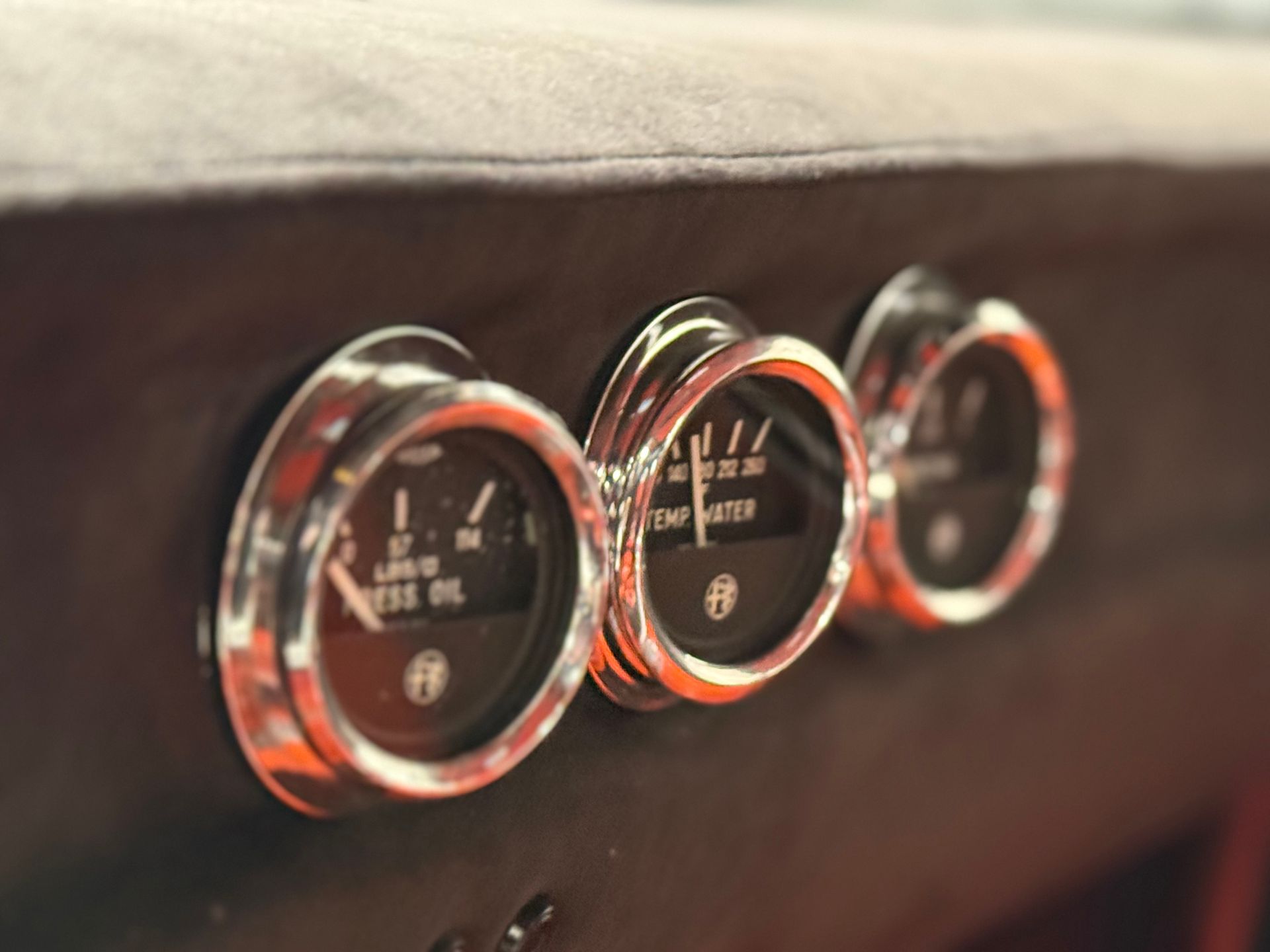 It was restored approximately 15 years ago, where it had an acid dip, bare shell restoration and all floors and sills were replaced with new panels and fitted new fibreglass arches to FIA spec. The owner even went to the Alfa museum in Italy and measured the pop rivet gaps to make sure they were to spec as they were in period. As the vehicle is a Group 2 period car it was allowed to be fitted with fibreglass doors, boot and bonnet.