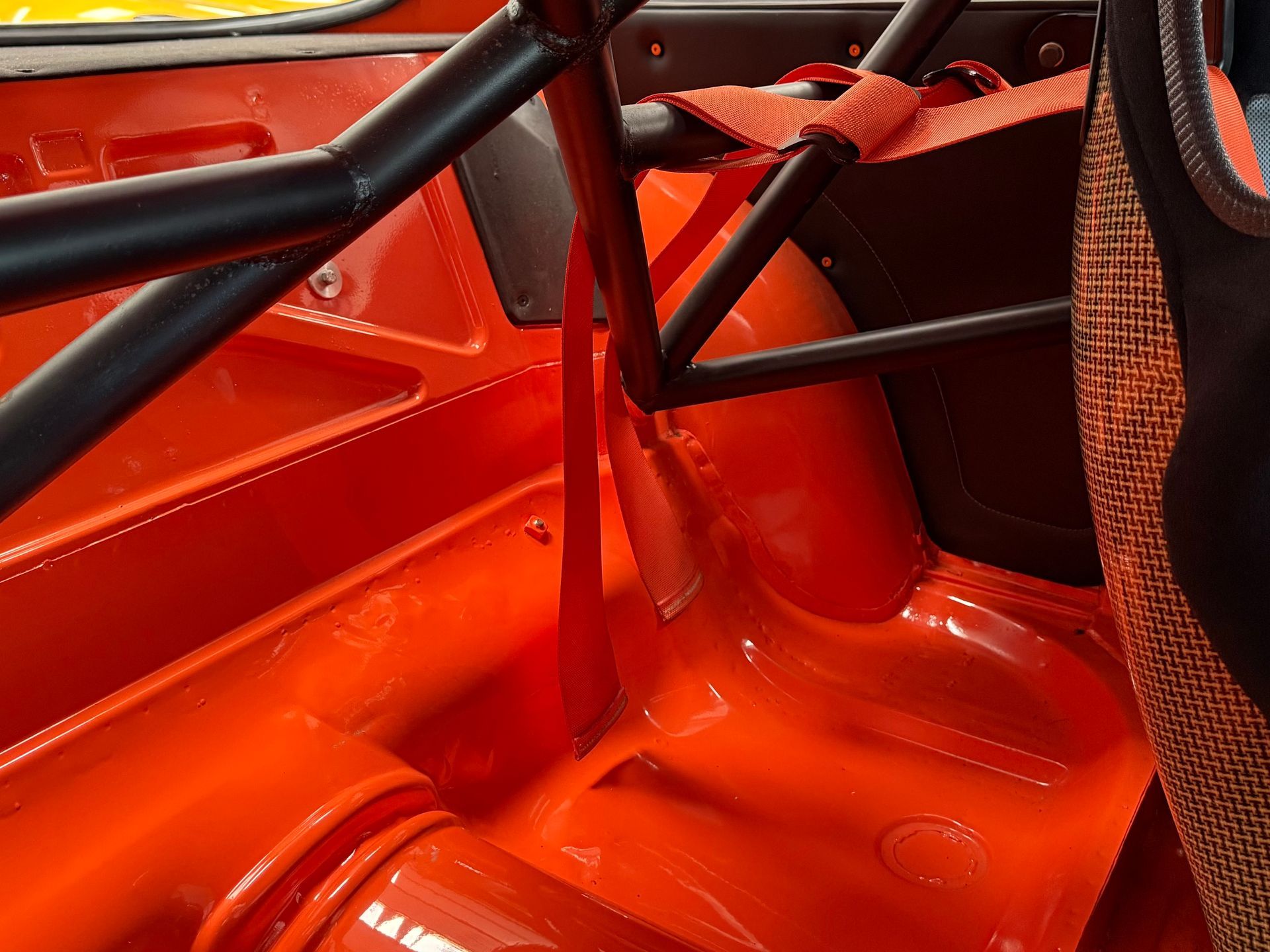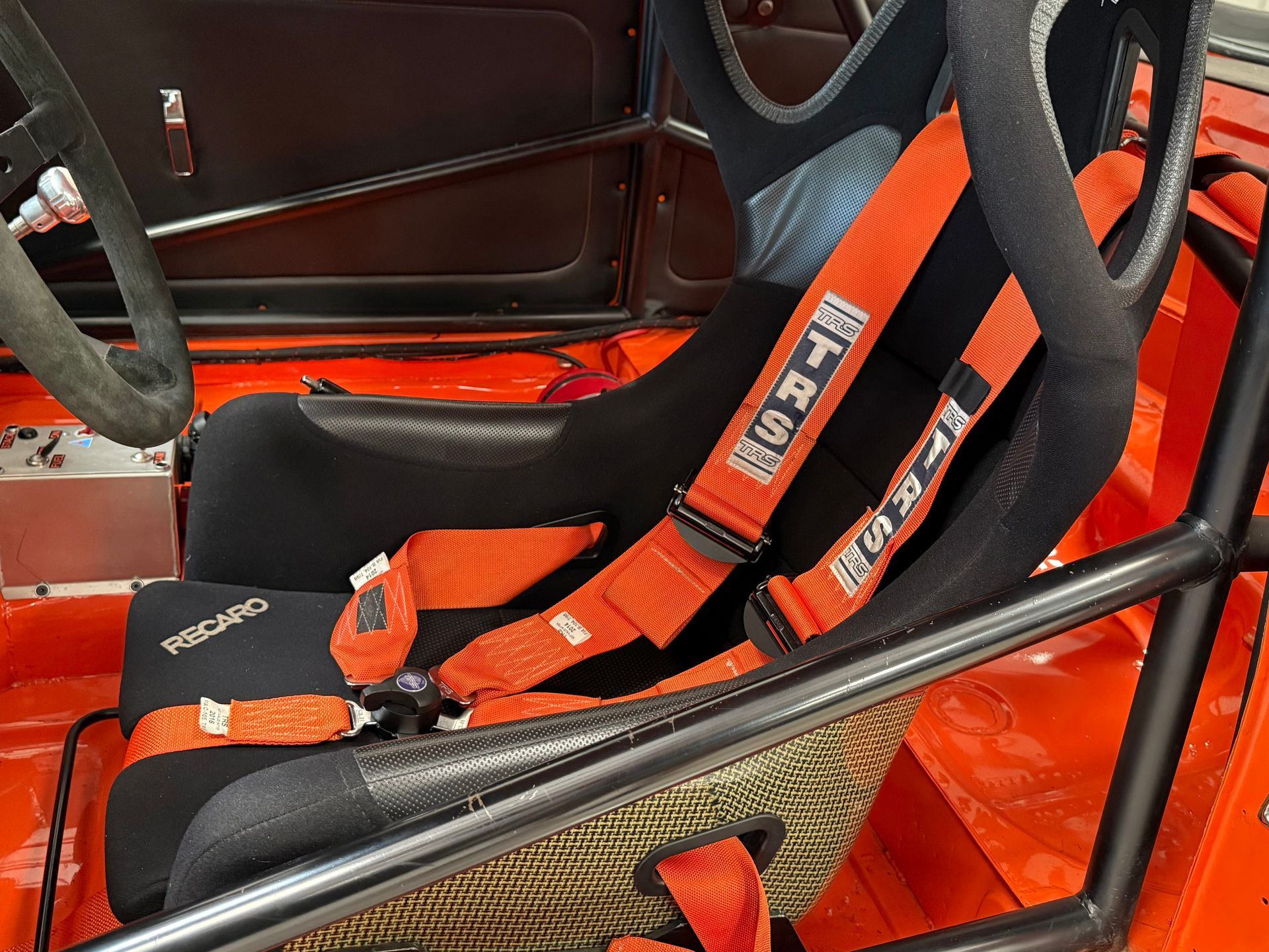 There is an electronic Lifeline Extinguisher which is due a service. A Carbon Corbeau Recaro Revolution Seat, wing back type, which is on adjustable Corbeau seat rails, fitted with 5-Point TRS wide belts, which are out of date. The FIA passport FIA Class CT19 Period G2 1970 to 1971 has expired and will need renewing.